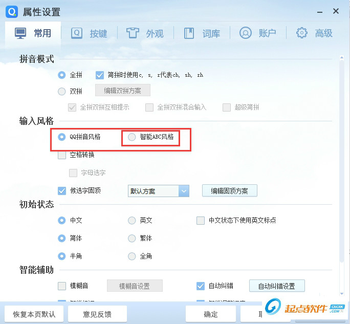 2、在【常用】里邊選擇【輸入風(fēng)格】即可選擇智能ABC的輸入風(fēng)格。