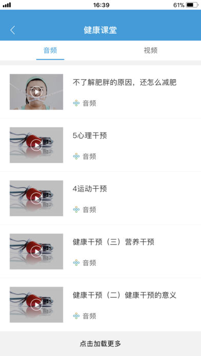 提供音頻和視頻兩種在線微課程,直切用戶健康關(guān)注點(diǎn),提升用戶的健康認(rèn)知。