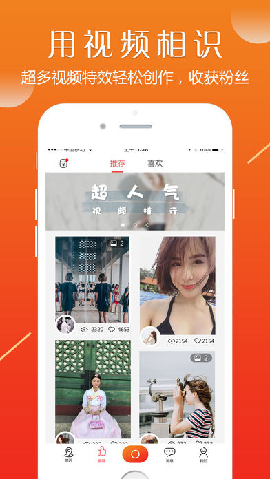 左滑右滑挑喜歡的人、隨手拍15s短視頻分享,收獲海量粉絲和禮物~~測試你的魅力,上傳照片后可實時查看有多少人喜歡你,從喜歡你的人中可選擇私聊哦~~