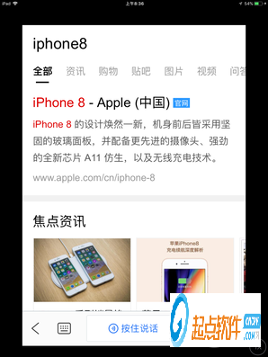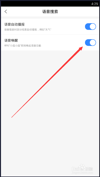 簡單搜索默認為語音輸入搜索方式,大家可以用按住說話形式進行搜索,也可以在選項設(shè)置中開啟語音召喚功能之后就可以用“小度小度”召喚出語音輸入。