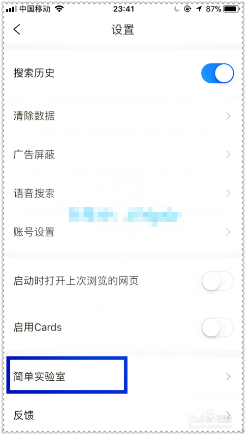 登錄完成后點擊“設(shè)置”,在設(shè)置界面中點擊“簡單實驗室”。