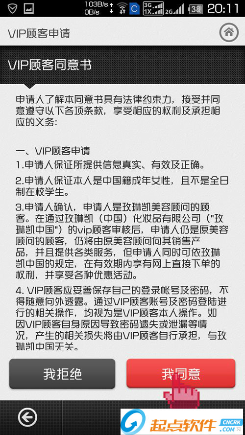仔細(xì)閱讀《VIP顧客同意書》并點(diǎn)擊“我同意”按鈕。