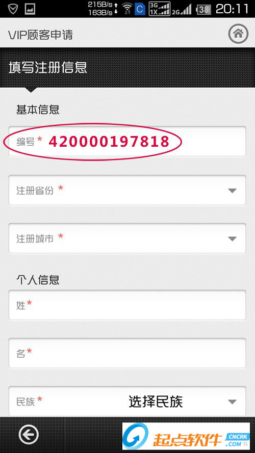 填寫注冊信息。在基本信息的編號欄填寫“420000197818”編號方能繼續(xù)注冊。繼續(xù)填寫全部信息后點(diǎn)擊注冊按鈕完成注冊。