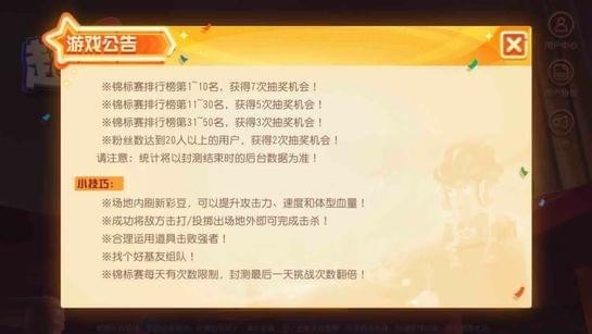 1、場地內(nèi)測刷新彩豆,可以提升攻擊力、速度和體型血量!