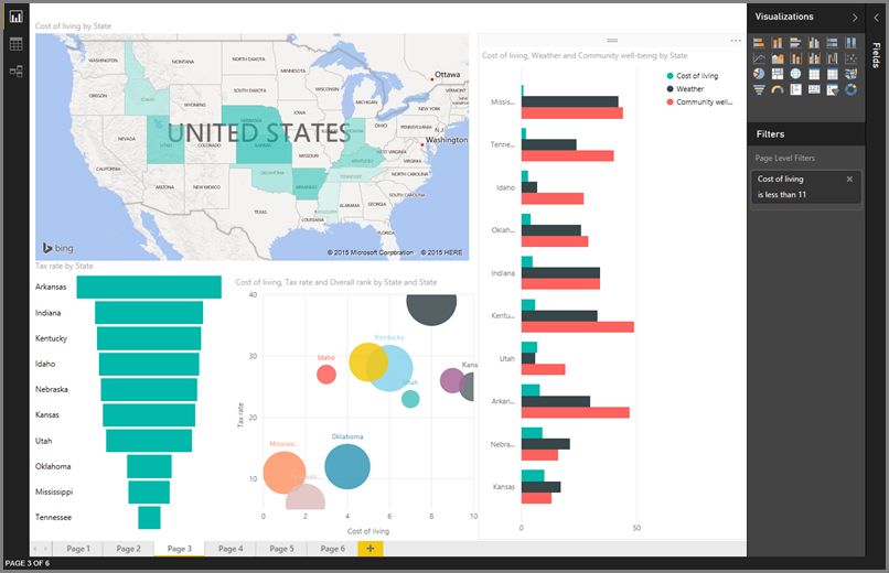 Power BI Desktop 提供“報(bào)告”視圖。選擇所需的字段,添加篩選器,從許多虛擬化選項(xiàng)中進(jìn)行選擇,使用自定義顏色、漸變和其他幾個(gè)選項(xiàng)來(lái)設(shè)置報(bào)告格式?!皥?bào)告”視圖可向您提供在 PowerBI.com 上創(chuàng)建報(bào)告時(shí)使用的相同一流報(bào)告和虛擬化工具。
