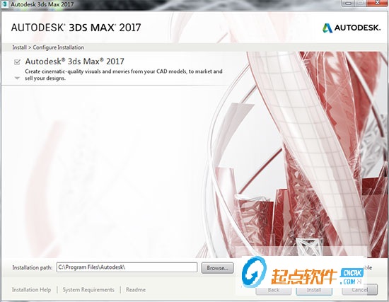4、選擇3ds Max2017的安裝功能以及安裝目錄,點擊“install”