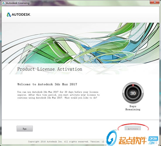 6、安裝完畢后,斷開計算機的網(wǎng)絡連接,運行桌面3ds Max2017快捷方式,點擊“Acitvate”激活