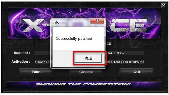 14.點(diǎn)擊“Patch”后會提示如下成功界面。(注:一定要提示成功,否則激活不會成功)。
