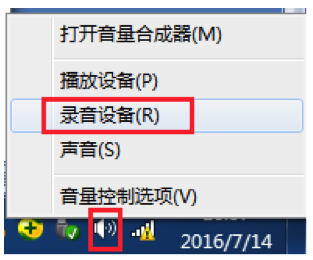 在桌面右下角的小喇叭上點擊右鍵,選擇錄音設(shè)備