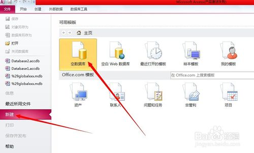 首先創(chuàng)建新數(shù)據(jù)庫(kù),點(diǎn)擊“空白數(shù)據(jù)庫(kù)”