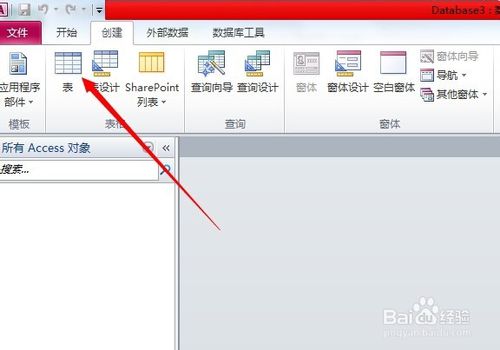 接下來(lái)創(chuàng)建一張表:點(diǎn)擊頭部導(dǎo)航“創(chuàng)建”-->“表”-->先保存(ctrl+s)-->編輯表名稱。