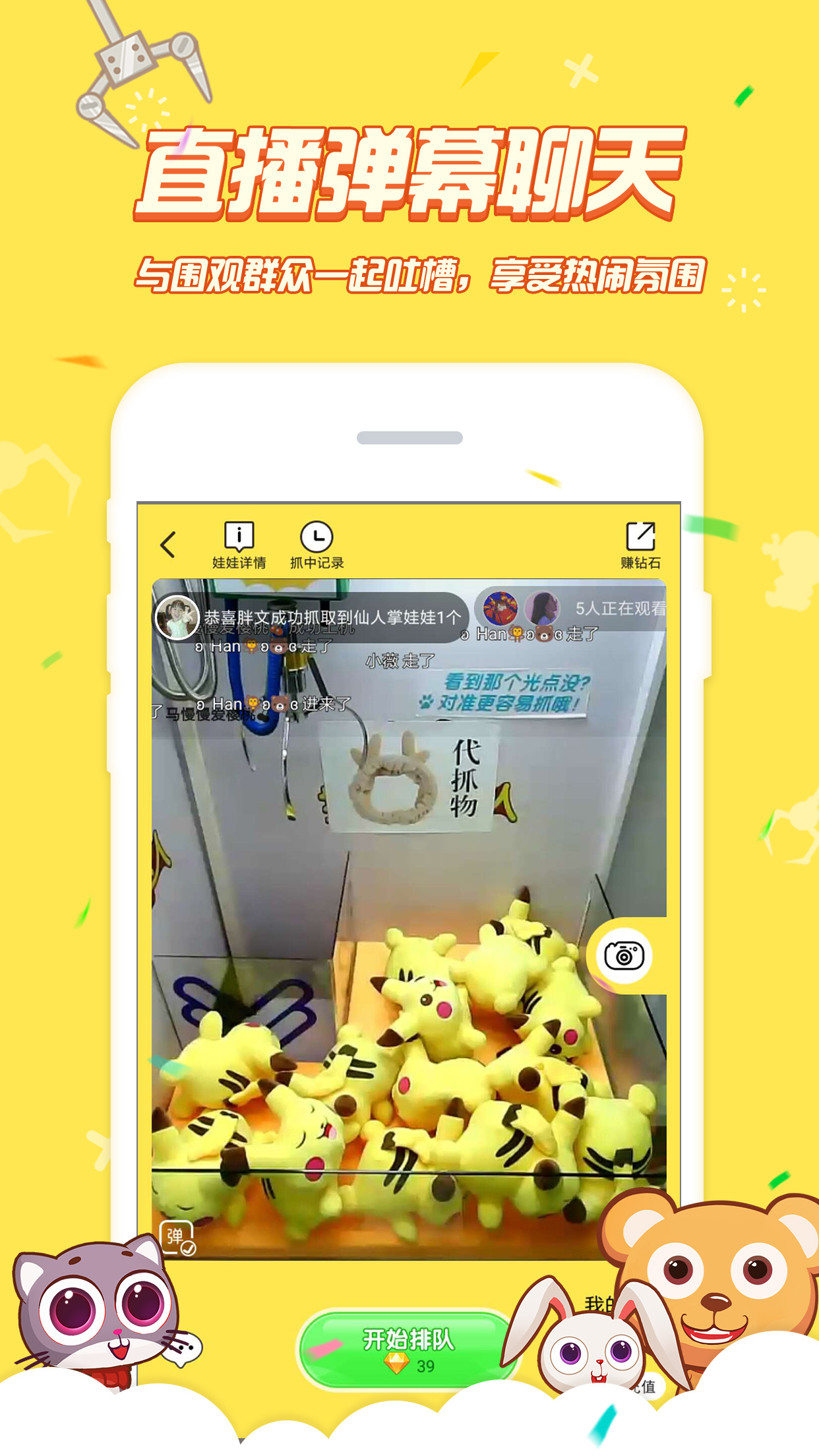直播抓娃娃,呼朋喚友一起圍觀來吐槽,彈幕功能更能點燃你的娃娃機之魂。如果你是抓娃娃達人,一定要來接受眾人的膜拜和瘋狂打call。