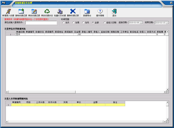 4、可對收據(jù)進行保存、修改、刪除、查詢統(tǒng)計等管理操作