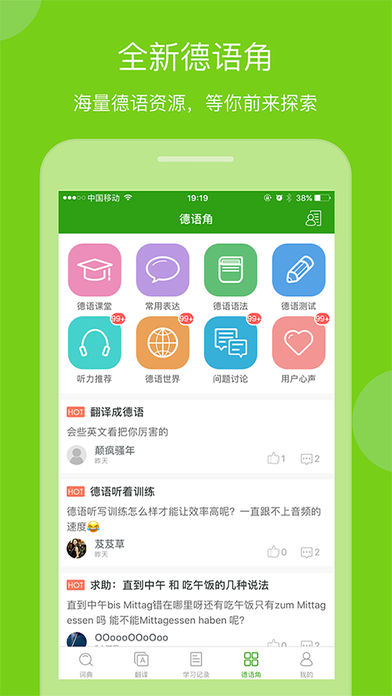 - 德語角功能,新增關注、私信等功能,和德語學習者一起交流;