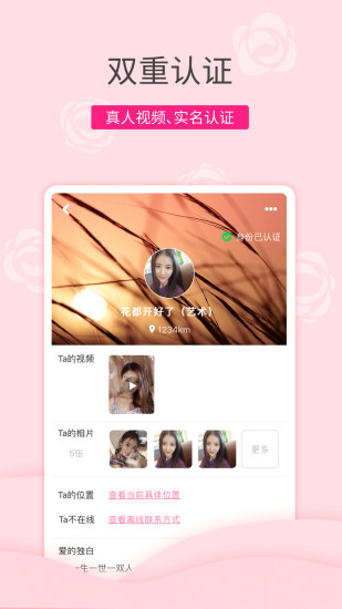【嚴(yán)格審核】真誠(chéng)相親交友,拒絕一切不真誠(chéng)的相親交友行為。單身用戶頭像均需通過(guò)人工審核后方可展示給其他用戶,違規(guī)用戶查實(shí)后將給予禁封賬號(hào)或設(shè)備的處罰。