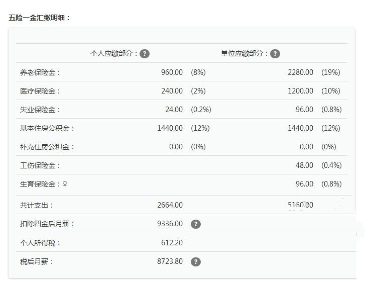 2、點擊計算,就可以得到一份詳細的稅后工資明細;