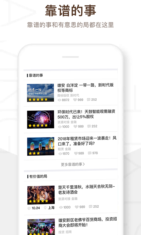 泰斗為泰山北斗的簡稱,泰斗匯是把德、行或事業(yè)的成就方面為眾人所敬仰的人匯聚在一起,構(gòu)建一個(gè)以信用體系為核心、價(jià)值增值為導(dǎo)向的高端企業(yè)家實(shí)名制社交。打破常規(guī)社交軟件的社交形式,創(chuàng)新人、事、局的人脈社交。