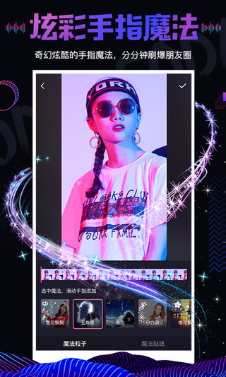 1、炫彩手指魔法,分分鐘刷爆朋友圈2、原創(chuàng)魔法貼紙,跟隨動(dòng)作軌跡更炫酷