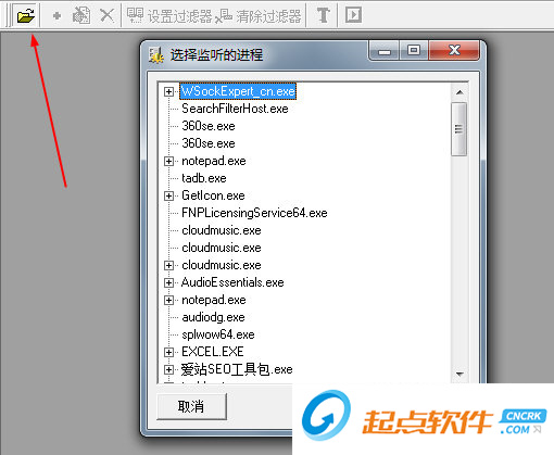 1、首先運行本軟件和需要監(jiān)視的網(wǎng)絡應用程序,然后使用"Open Process"按鈕,選擇正確的程序打開,這時候會創(chuàng)建一個子窗口,使用同樣的方法您可以同時監(jiān)視多個進程。