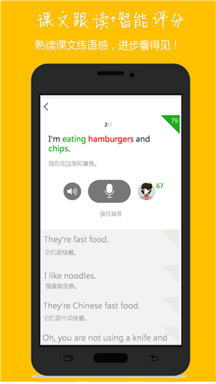 課文逐句跟讀,智能評(píng)分,系統(tǒng)錄音。