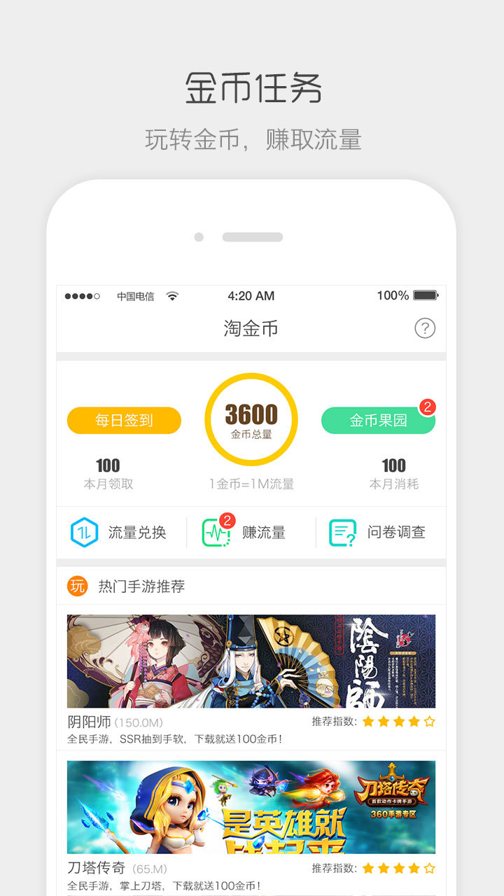 - 流量管你夠,金幣還可換;