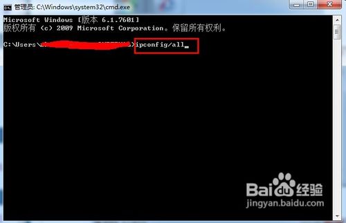 在命令提示框內(nèi),我們輸入“ipconfig/all”之后按回車鍵