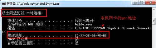 找到本機(jī)對應(yīng)的ip ,其對應(yīng)的mac地址即為本機(jī)mac地址。