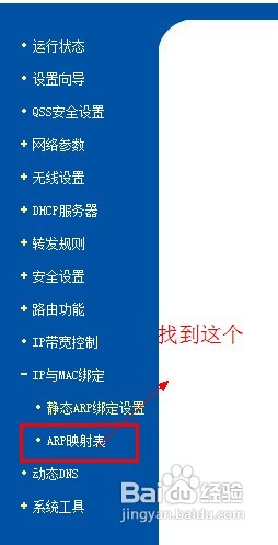 進(jìn)入無線設(shè)置地方,找到“ip和mac綁定”里面有個“APR映射”