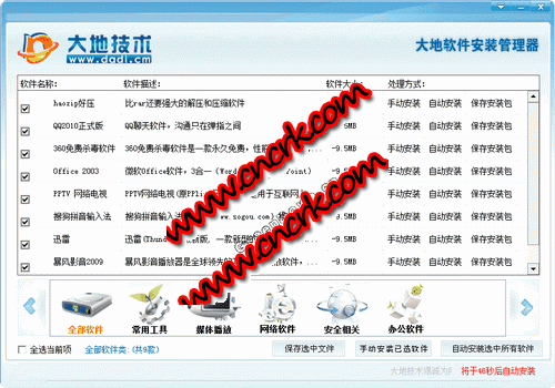 大地軟件選擇安裝工具,下載后在dadi.ini里編輯需要添加的軟件,軟件ICO自動獲取圖標,軟件大小自動獲?。?