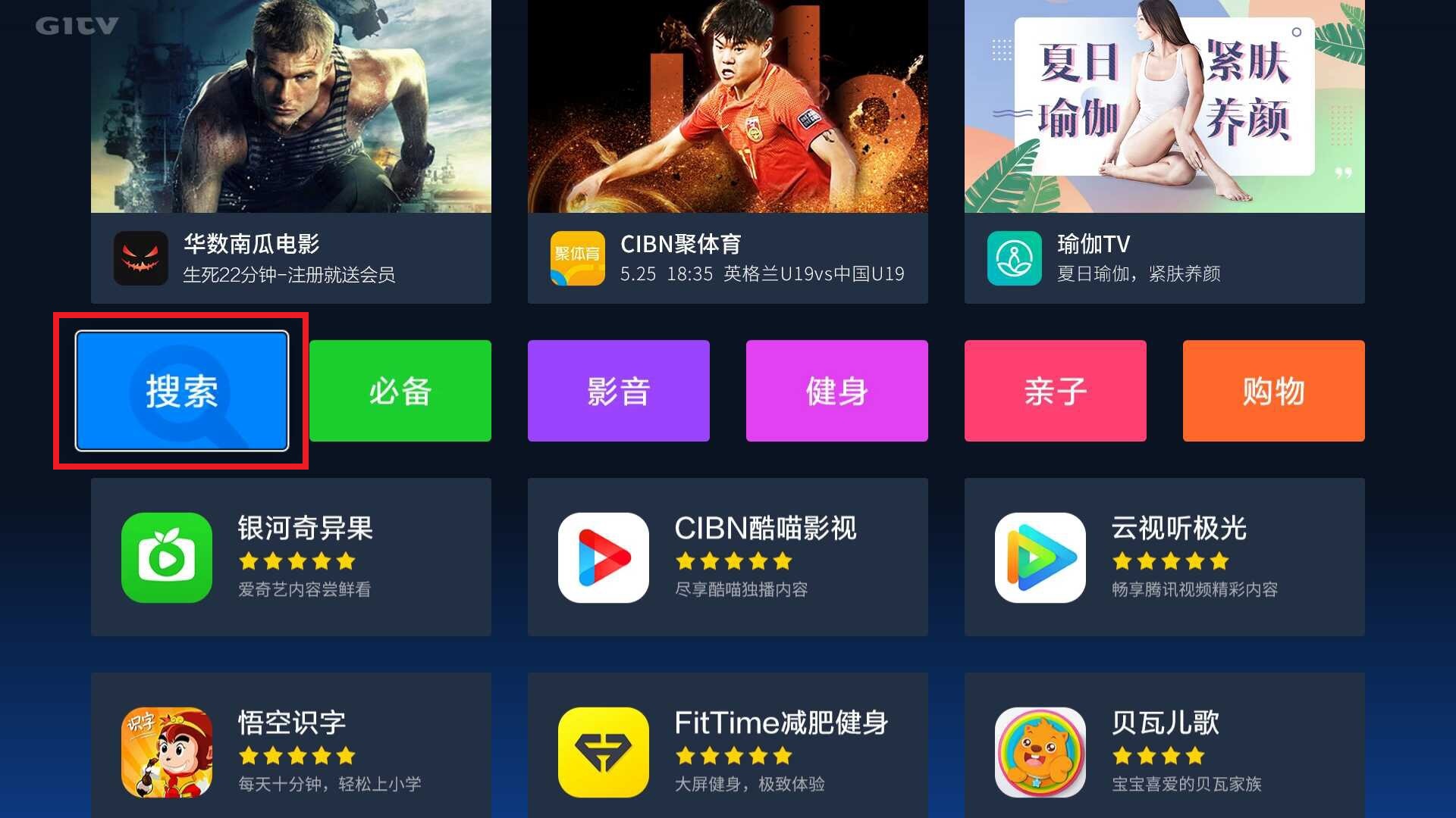 1.打開(kāi)電視【應(yīng)用】,進(jìn)入【搜索】頁(yè)面;