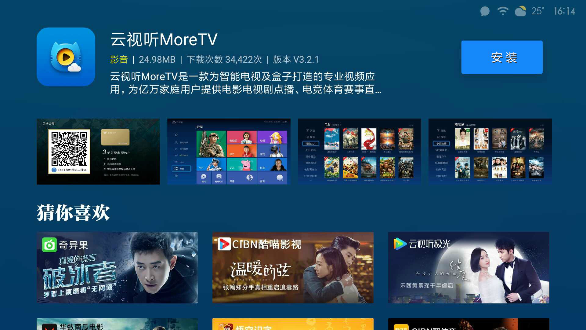 3.點(diǎn)擊進(jìn)入詳情頁(yè),點(diǎn)擊【下載】按鈕,即可安裝電視貓視頻(云視聽(tīng)MoreTV);