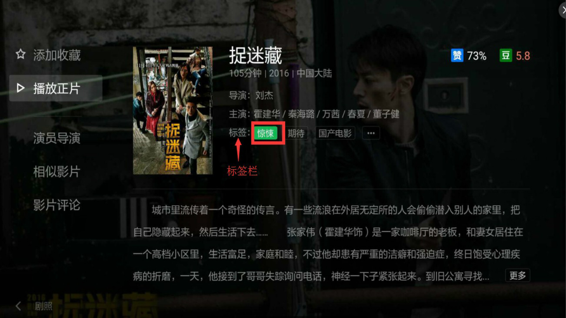 訂閱標(biāo)簽1.打開(kāi)電視貓視頻(云視聽(tīng)MoreTV),選擇您喜歡的影片,進(jìn)入影片詳情頁(yè),找到標(biāo)簽欄,選中您心儀的標(biāo)簽,點(diǎn)擊進(jìn)入該標(biāo)簽列表頁(yè)面;