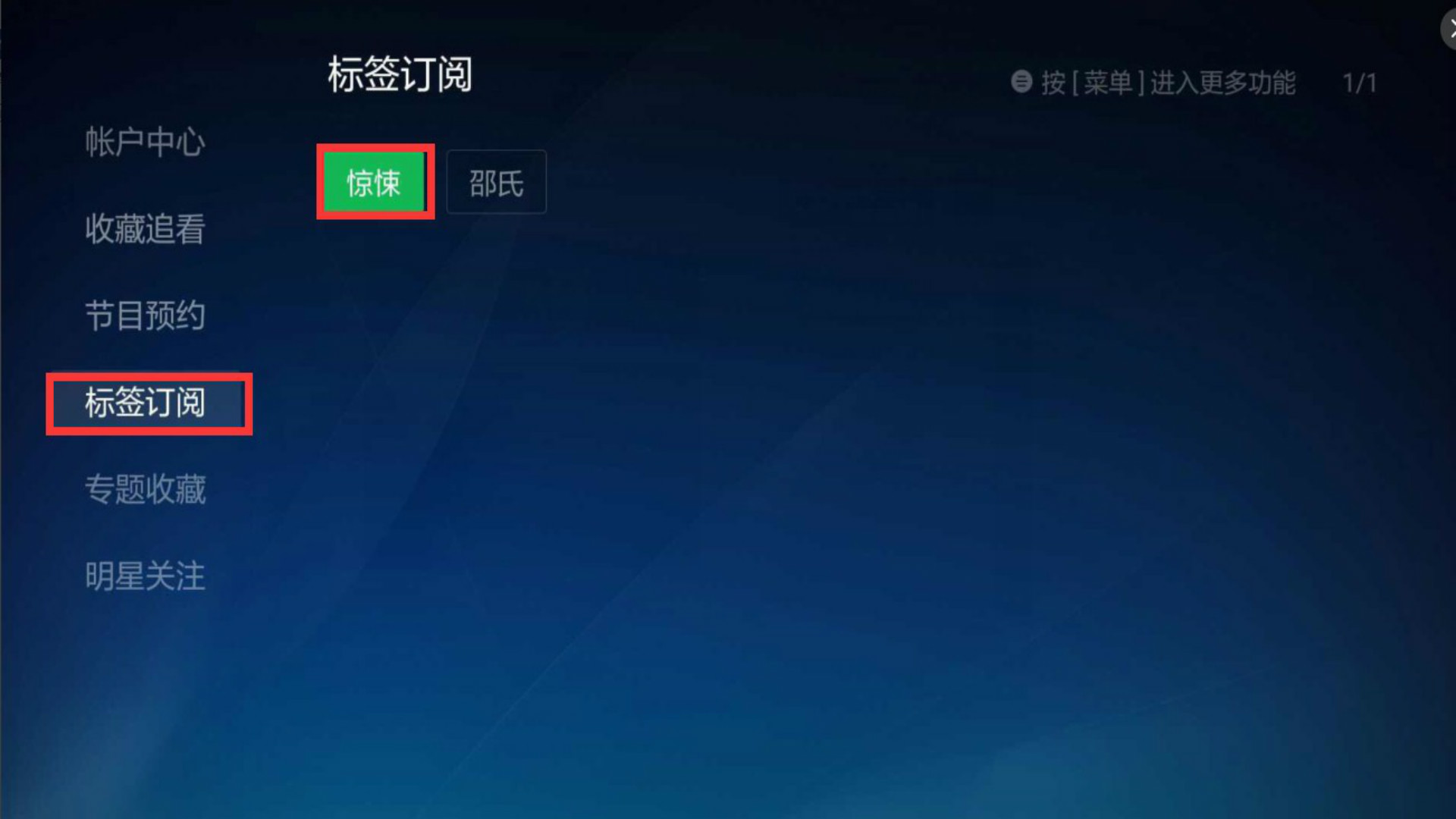 3.只需在【我的電視】版塊,點(diǎn)擊個(gè)人賬戶頭像進(jìn)入個(gè)人中心,選中【標(biāo)簽訂閱】欄,即可查看收藏的所有標(biāo)簽;