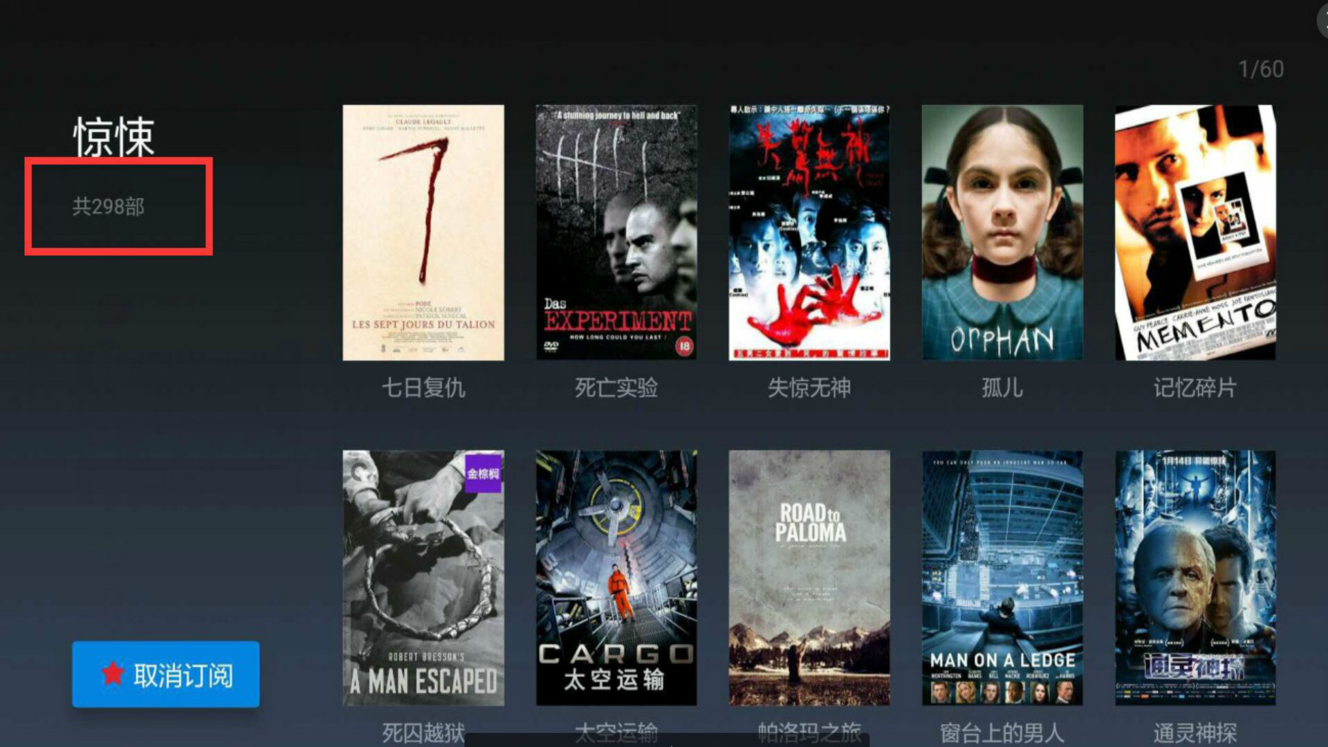4.點(diǎn)擊想要查看的標(biāo)簽,即可看到該標(biāo)簽下的所有影視劇集,例如小編收藏的驚悚類標(biāo)簽,足有298部之多,可以盡情看;