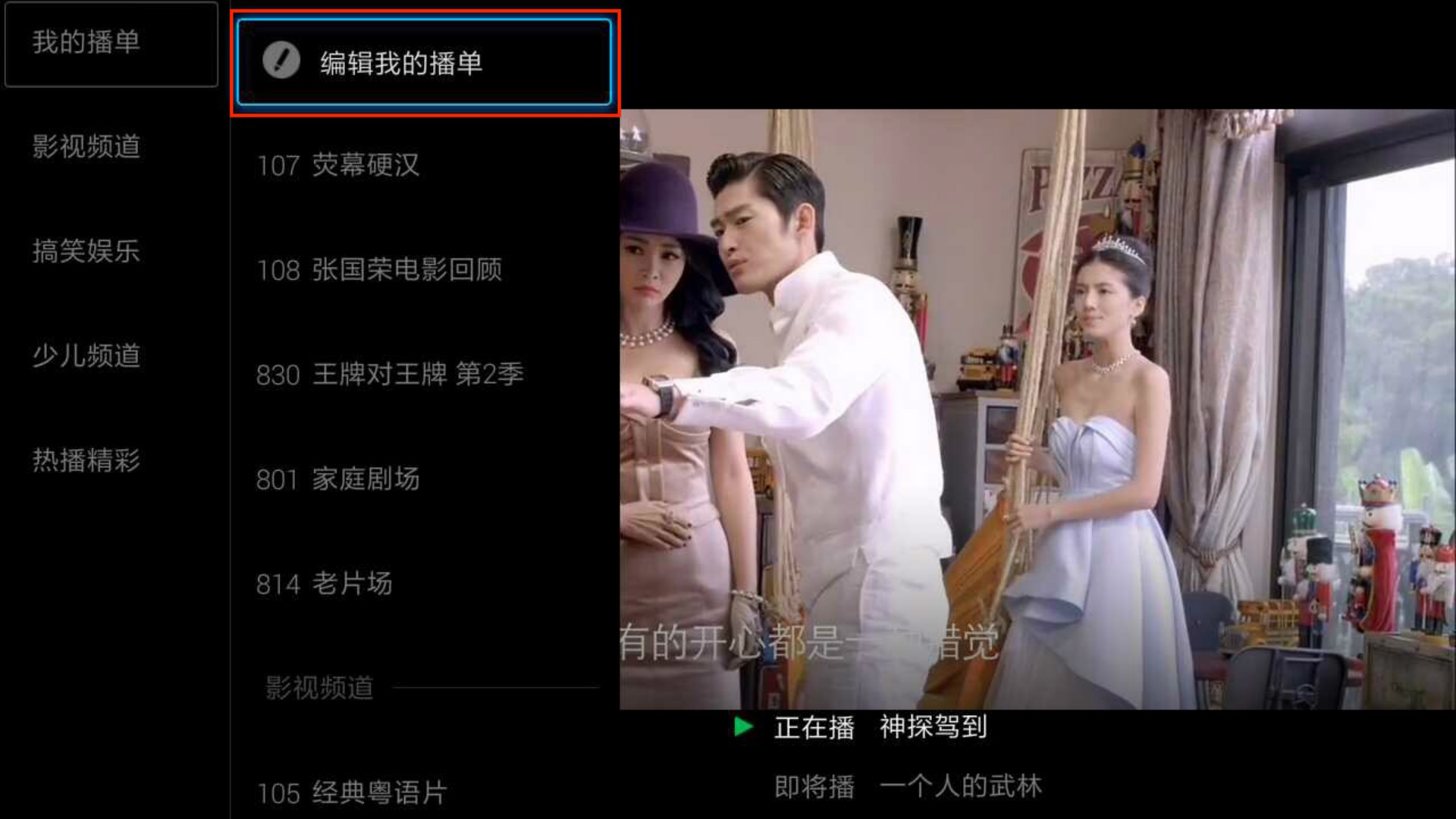 1.進(jìn)入Live版塊,點(diǎn)擊全部播單,按OK鍵調(diào)出頻道列表,點(diǎn)擊【我的播單】下方的【編輯我的播單】;