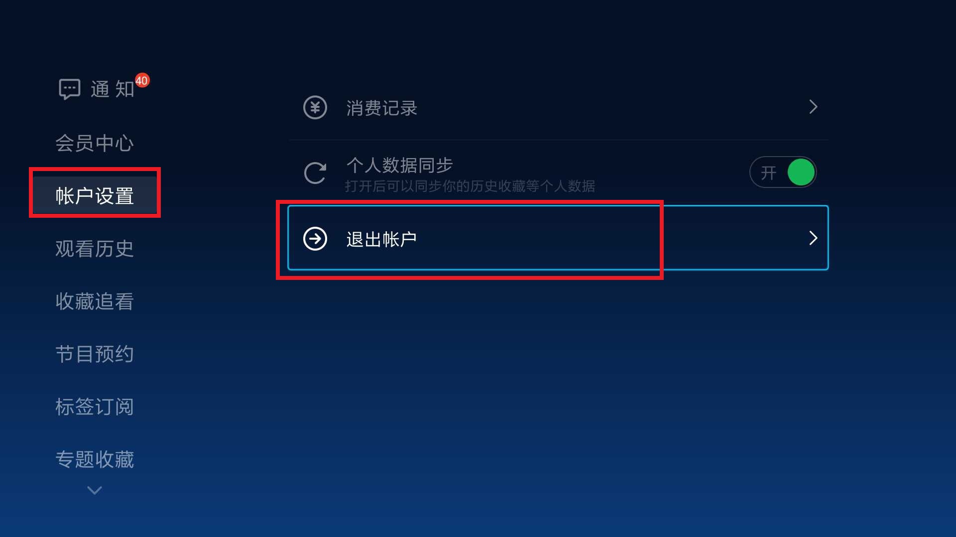2.移動(dòng)光標(biāo)至【帳戶設(shè)置】,點(diǎn)擊【退出帳戶】;