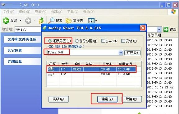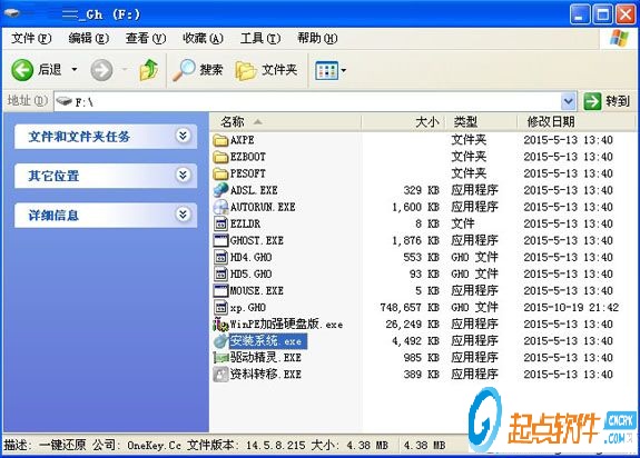 2、雙擊“安裝系統(tǒng).exe”打開OneKey Ghost,選擇安裝在C盤,確定;