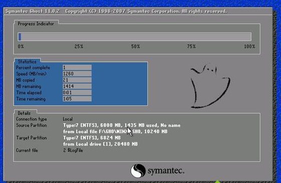 4、還原之后,電腦自動重啟,開始執(zhí)行windows xp安裝版系統(tǒng)的安裝;