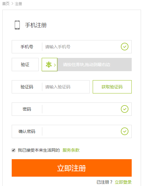 填寫郵箱、密碼、驗(yàn)證碼,閱讀并勾選"我已接受本來生活網(wǎng)的服務(wù)條款",點(diǎn)擊立即注冊