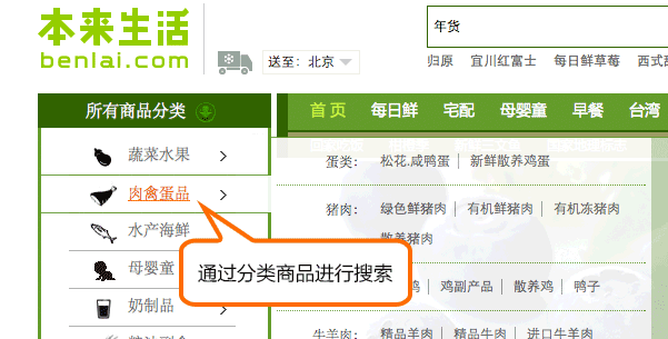 通過頁面左側(cè)分類導(dǎo)航進(jìn)行商品搜索