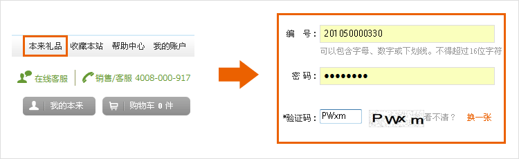 在本來生活首頁右上角,點(diǎn)擊"本來禮品",輸入禮品冊編號、密碼,進(jìn)入可兌換禮品頁面。