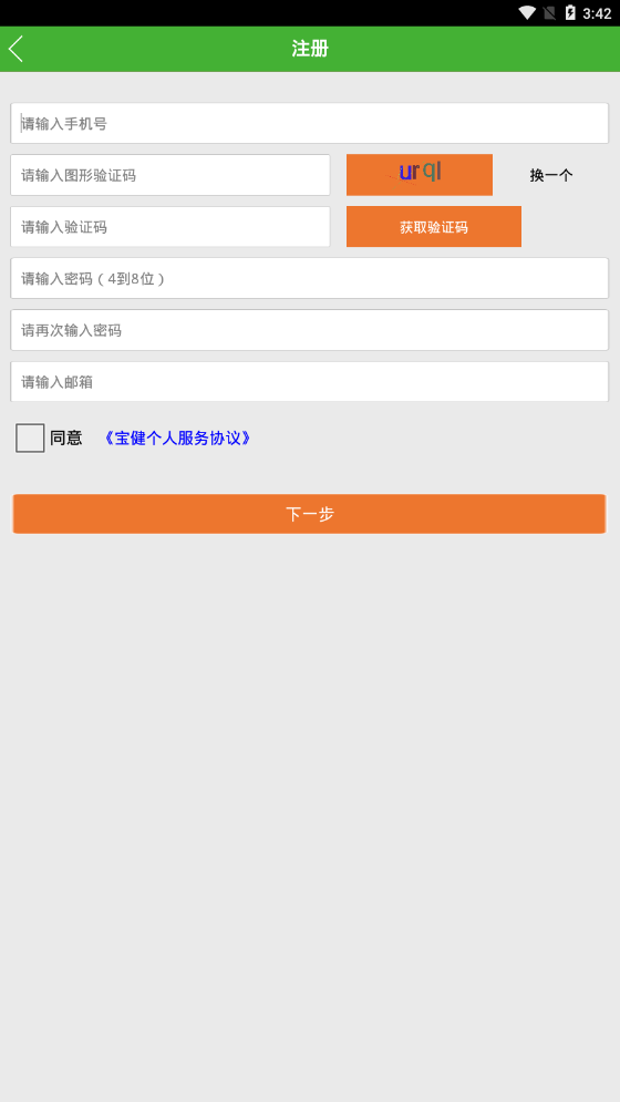 3、用戶需要輸入手機(jī)號(hào)、圖形驗(yàn)證碼、手機(jī)驗(yàn)證碼、密碼和郵箱賬號(hào)之后,點(diǎn)擊“下一步”,完成注冊(cè)。