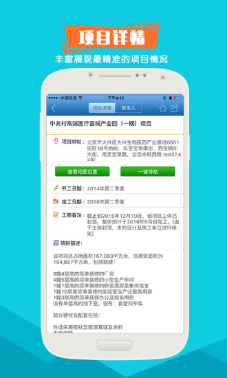 【工程信息】及時準確嚴格核實的信息發(fā)布,確保每一個聯(lián)系方式都是有效溝通【附近工程】以用戶所處的位置為基點,定位最近的項目信息,省時省力,就近出發(fā)
