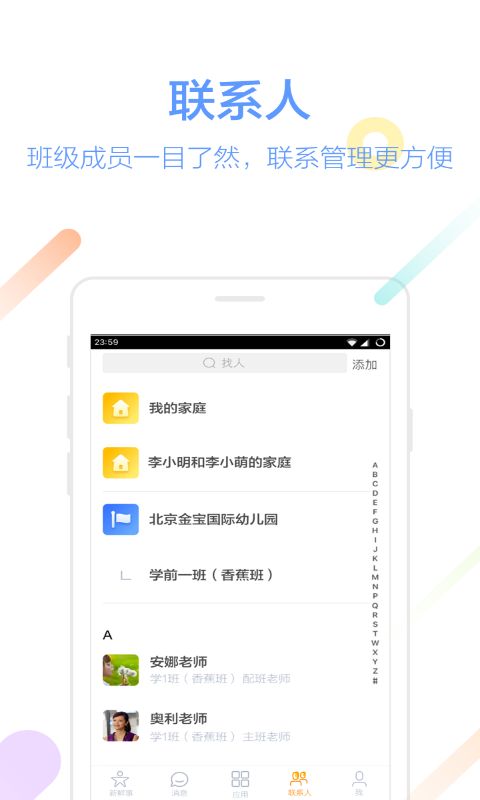 知了是一款專(zhuān)為幼兒園及家長(zhǎng)服務(wù)的互動(dòng)及管理應(yīng)用,致力于提升幼兒園信息化水平,為幼兒園及家長(zhǎng)提供家園溝通,園務(wù)管理,育兒知識(shí)傳播,校園安全以及膳食保健等專(zhuān)業(yè)服務(wù),目前已經(jīng)有30個(gè)省份近5000家幼兒園使用。