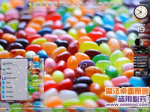 魔法桌面原創(chuàng)xp仿vista桌面主題——甜蜜糖果。本主題包含三種字體版本,默認是宋體版,您可以在“外觀”-“字體大小”處切換至微軟雅黑版或是arial字體版。此主題還附帶精美的仿vista登陸界面哦~