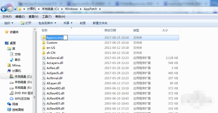 3、將C:/WINDOWS/AppPatch/AppLoc.tmp刪除,并且新建一個(gè)空文件,把名稱改為AppLoc.tmp即可。如圖: