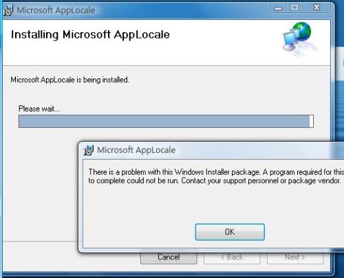一、Microsoft Applocale無法安裝?1、問題:每次安裝到一半就出現(xiàn)一串英文字母視窗下面有個(gè)OK按下去以后就取消安裝了怎么解決啊