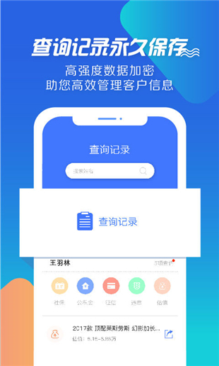 -社保、公積金、征信查詢,快至10秒獲取報告;-車輛估值、車輛違章實時查詢,準確評估客戶資產(chǎn)狀況;