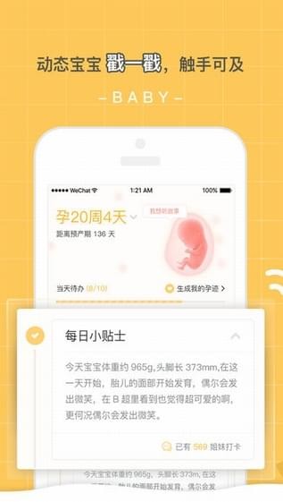 【極簡主義日程】產檢計劃,每日小貼士,孕周媽寶變化,HCG監(jiān)測,體重管理,數(shù)胎動,胎教 ,基礎體溫,什么不能吃,寶寶成長變化,疫苗接種……豐富的日程管理計劃全面覆蓋懷孕早中晚期,把孕期各種繁瑣事項化整為零、化繁為簡,幫你“傻瓜式”無憂過孕期!【萌點十足小功能】說給寶寶聽,會動的孕肚照,私家紀念冊……既智能又人性化,讓你發(fā)現(xiàn)孕期還能這么玩!一不小心就被萌到,多重溫馨和驚喜正向你飛奔而來!