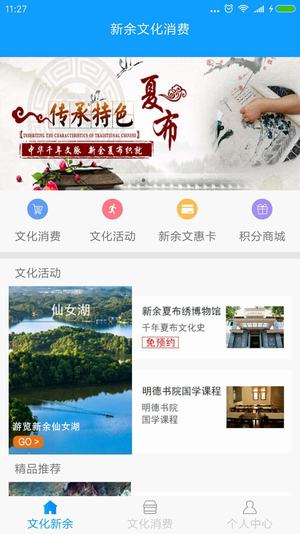 新余文化消費(fèi)APP是國家文化消費(fèi)試點(diǎn)城市(新余)的線上公共平臺,開辟文化活動、文化娛樂、文化旅游、文化產(chǎn)品、文化教育、文化場館、積分商城七大版塊。